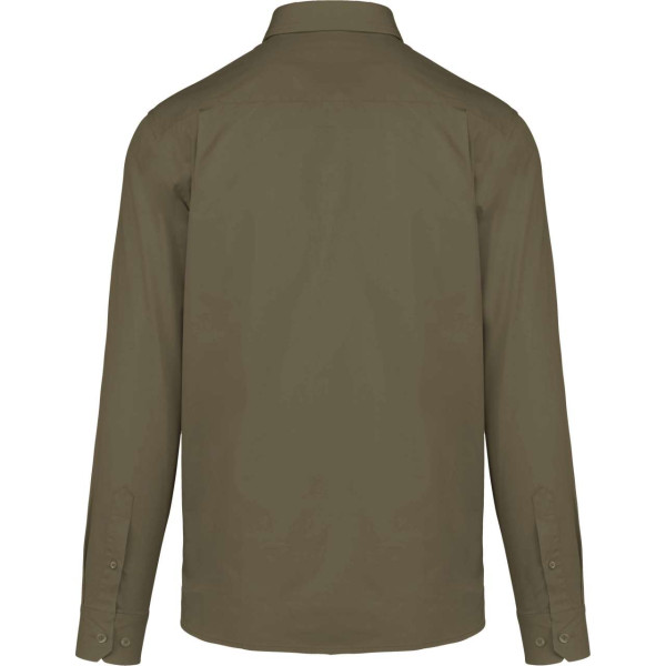 100% cotton;Twill fabric with peached soft touch;Button-down collar;Matching buttons;Chest pocket on left side;Contrast Oxford silver inner collar stand and cuffs;Back with 2 side pleats and lined yoke;Felled seam finish;Adjustable cuff with button pointed tab end;Spare button;