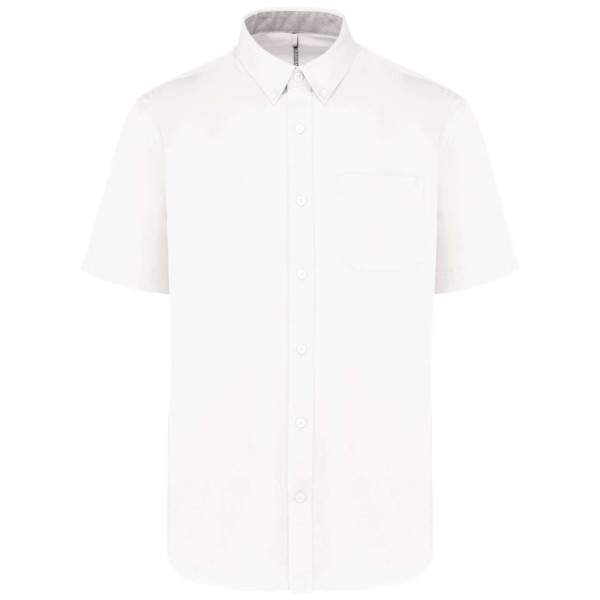 100% cotton;Twill fabric with peached soft touch;Regular fit;Button-down collar;Matching buttons;Chest pocket on left side;Contrast Oxford silver inner collar stand;Back with 2 side pleats and lined yoke;Felled seam finish;Spare button;