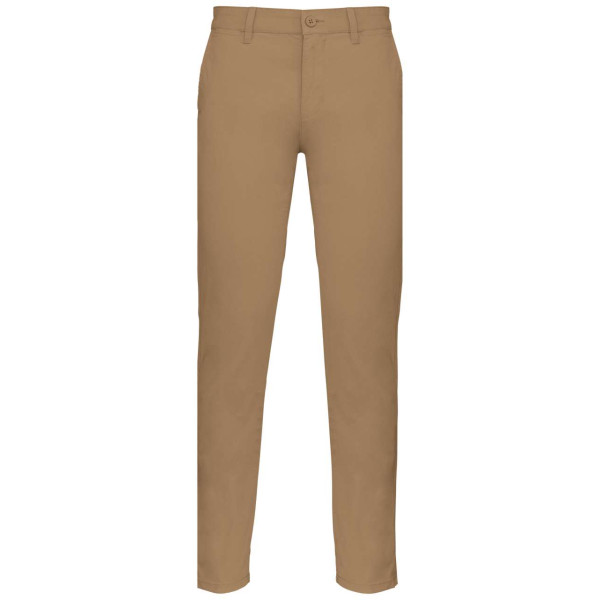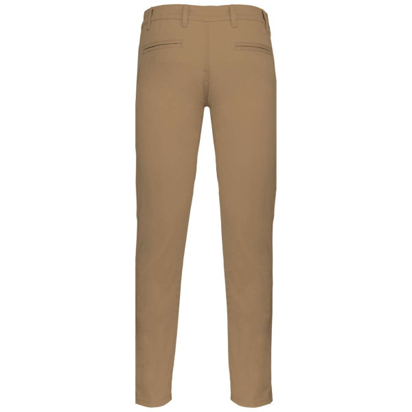 98% cotton twill/2% elastane;Enzyme-washed fabric for optimal comfort;2 Italian side pockets including 1 with a coin pocket and a ticket pocket;2 back pockets with piping and reinforced seams;Buttoned and zip fastening;Waistband with belt loops;Modern style;This product has been specially treated and appears intentionally aged;This manufacturing process results in colour variations between products and makes each piece unique;