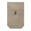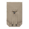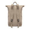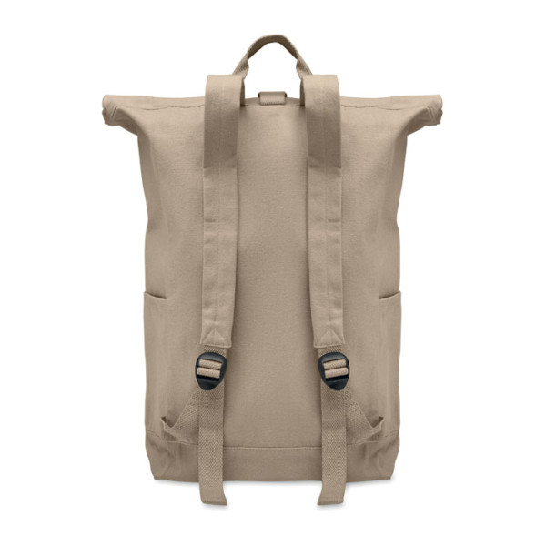 Roll top backpack with hook and loop closure in 390 gr/m² recycled cotton (80%) and recycled polyester (20%). Zippered front pocket.