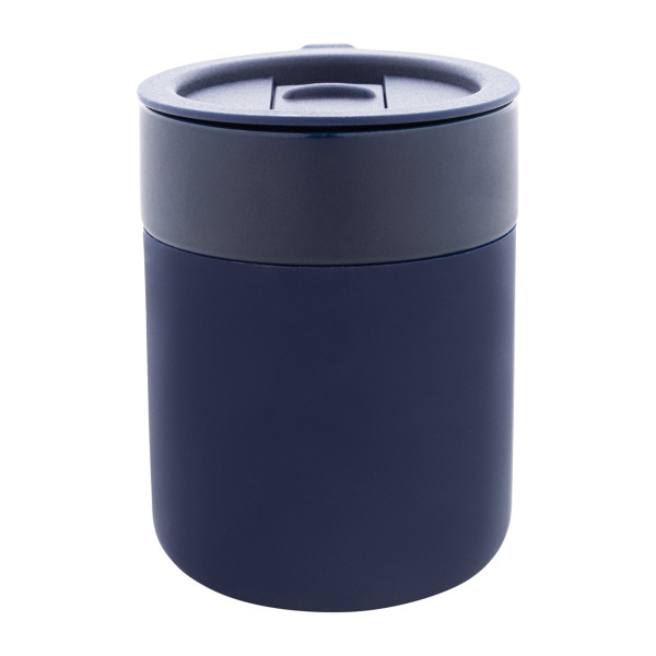 Silicone covered ceramic travel cup with PP plastic drining lid. 300 ml.