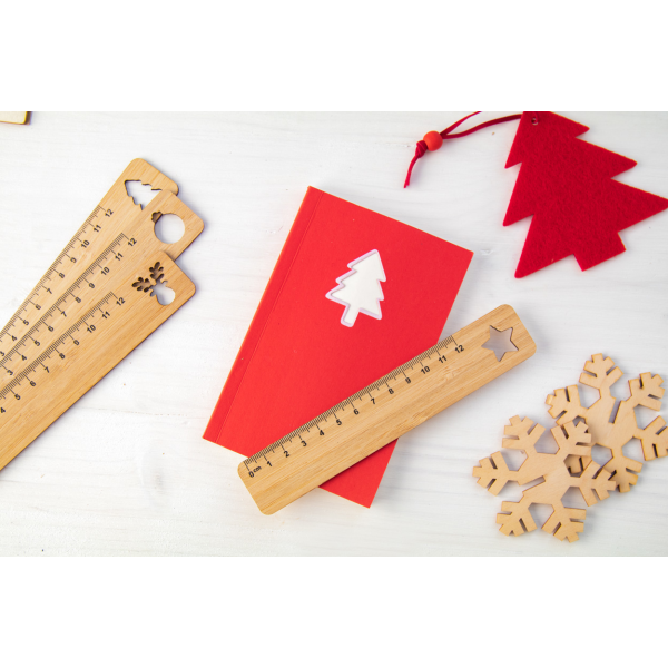 12 cm bamboo plywood ruler with sink cut Christmas motive.