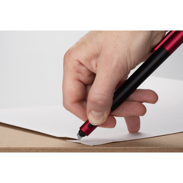 The SNIP marker is a practical 2-in-1 tool that combines the function of a marker and a letter and parcel knife. On one side is a classic marker with a stopper and on the other is a twist-out knife with a locking blade for safe use. The possibility of logo branding further increases its potential as an advertising gadget.