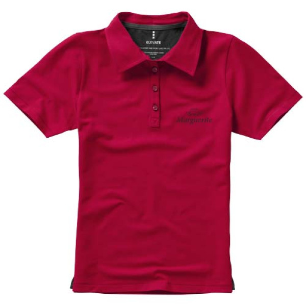 The Markham short sleeve women's stretch polo is the perfect blend of style, comfort, and versatility. Made from a 200 g/m² high-quality double piqué knit fabric, this polo offers a luxurious feel and exceptional durability. The premium blend of 95% cotton and 5% elastane provides an optimal balance of breathability, softness, and stretch. The addition of elastane and self-fabric collar ensure a comfortable and flexible fit, allowing for unrestricted movement throughout your day. The polo is designed with a fitted shape for a feminine look. Whether you're heading to the office, or going out for a casual outing, this polo keeps you looking and feeling your best.