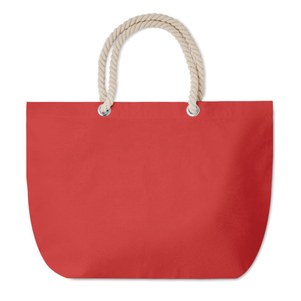 Beach bag or shopping bag in cotton with cord handle. 220 gr/m².