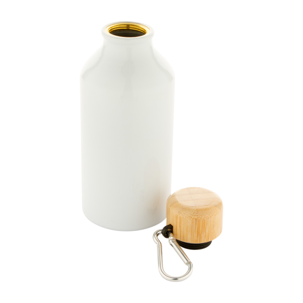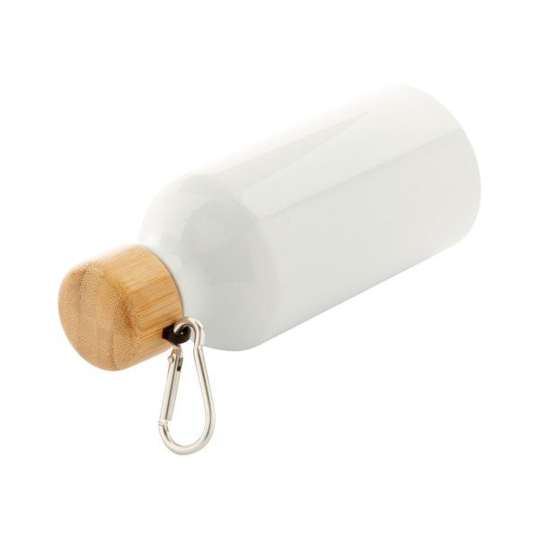 Aluminium sport bottle with bamboo lid and carabiner, 400 ml.
