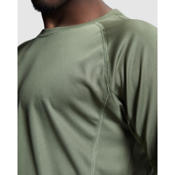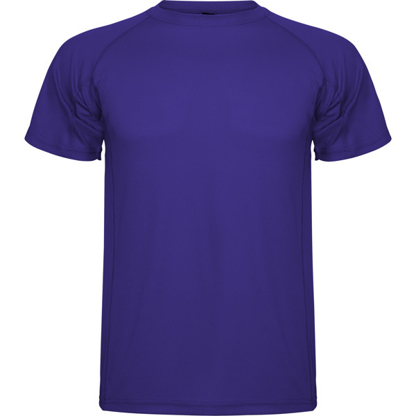 Short-sleeve technical raglan t-shirt. Crew neck with matching covered seams. Matching overlocked panels in sleeves and sides.