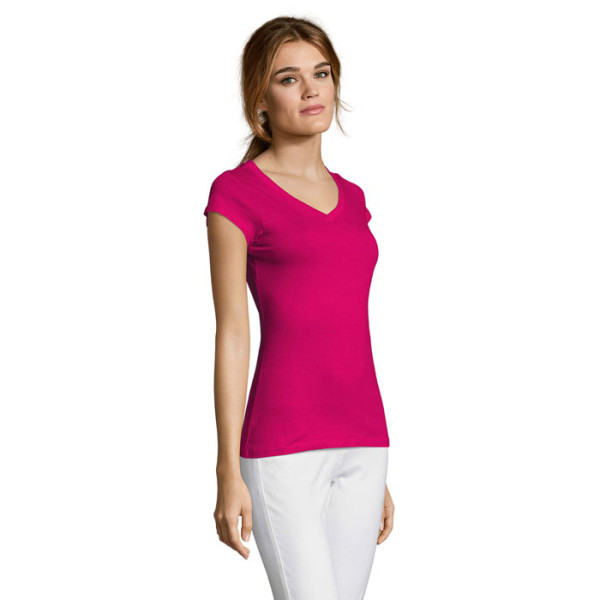 SOL'S MOON, women's v-neck t-shirt, 100% semi-combed ringspun cotton jersey 150, reinforcing tape on neck, short sleeves, fitted cut, v-neck with rib edges, cut and sewn. About sizes matching, please refer to the size chart in the product documentation section.