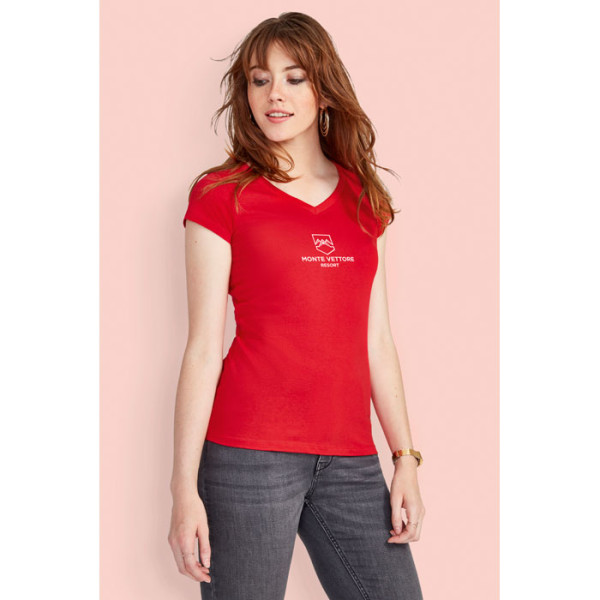 SOL'S MOON Ladies V-neck women's T-shirt with slightly deeper V-neck and fitted cut styling with sewn side seam, reinforced neck seam. Fabric detail: 150g/m² 100% semi-combed ringspun cotton, OEKO-TEX®. Only sold with print