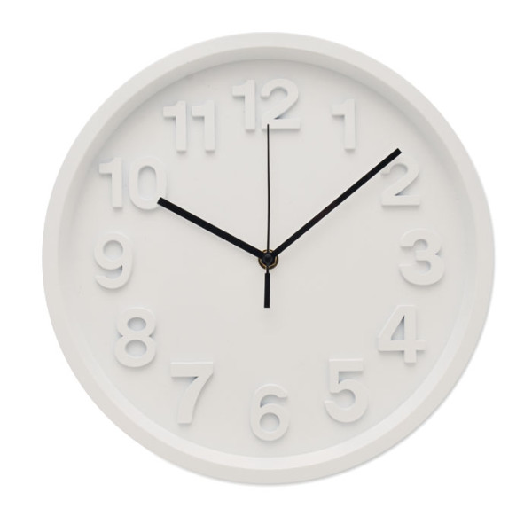 Wall clock in PP with aluminium hands and silent movement. Requires 1 AA battery (not included).