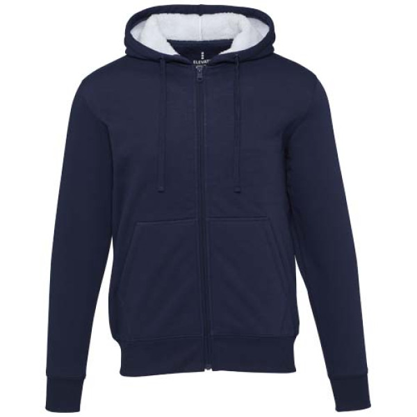 The Natron sherpa full-zip hoodie combines warmth, comfort, and everyday style. Made from 50% GRS certified recycled cotton, 10% cotton, and 40% polyester, it features a luxuriously soft 100% polyester sherpa lining for maximum cosiness. The design includes a full-length zip and two practical front pockets, making it both functional and versatile.