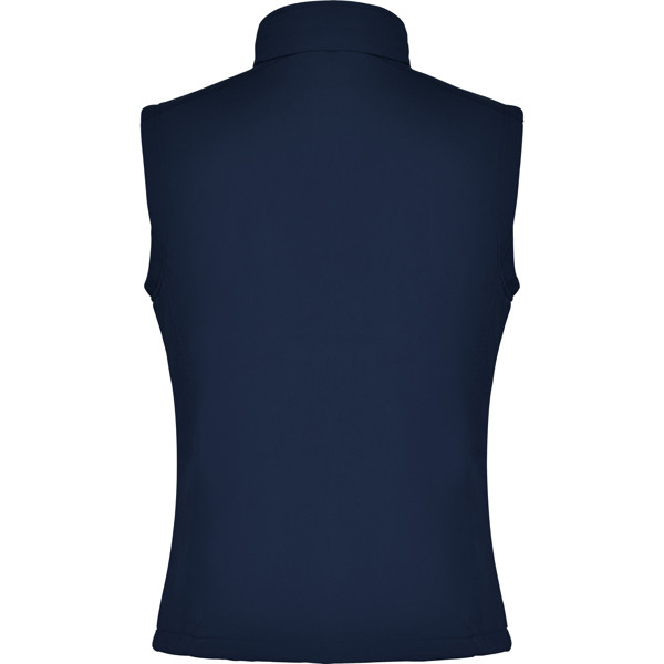 2-layer softshell gillet with warm inner lining in microfleece fabric. Inverted central zip with contrasting chin protector and puller. Two side pockets and a zipped one on chest. Hem with inner side adjusters.