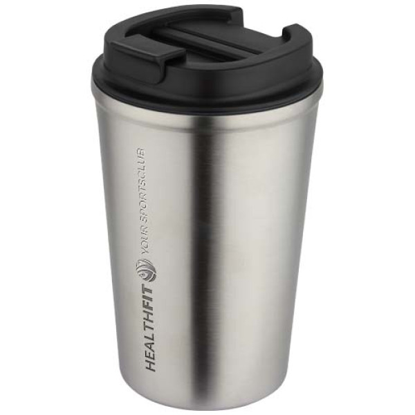Designed for drinks on the go, this double-wall, vacuum-insulated stainless steel coffee tumbler keeps beverages at the right temperature for longer. A twist-on lid allows smooth opening and closing while making the drink easy to enjoy, and the matte coating adds a sleek finish. Volume capacity: 350 ml.