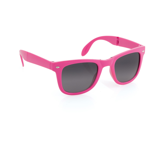 Foldable, plastic sunglasses with UV 400 protection.