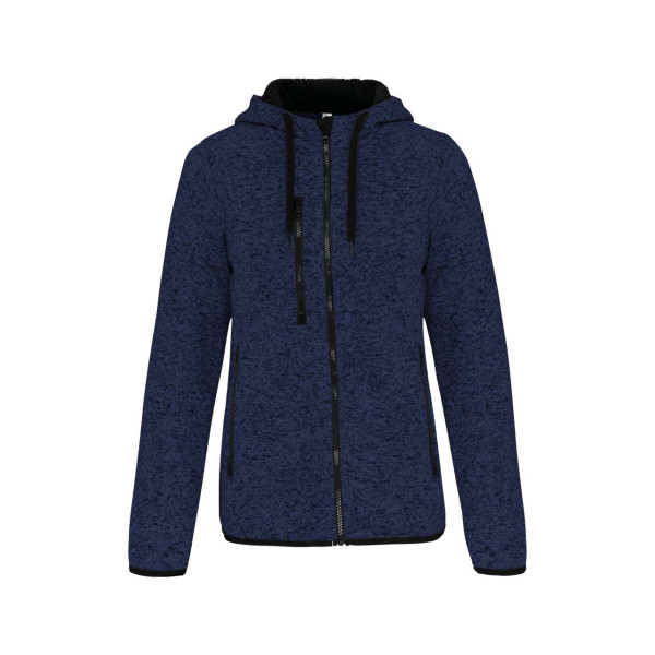 Inner brushed knit in 100% polyester;2 contrasting zipped front pockets and 1 contrasting zipped chest pocket;Hood with contrasting 100% cotton jersey lining and contrasting drawcord;Cuffs and hem with contrasting elasticated binding;Panels with topstitch finishing;
