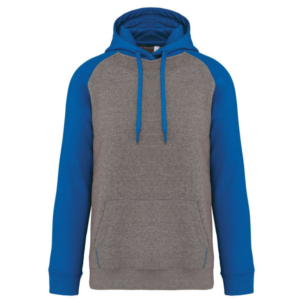 65% polyester / 35% cotton;Brushed fleece;Contrasting raglan sleeves and hood;Matching mesh lined hood;Kangaroo pockets with fluorescent phone pocket;Earphone access;Double layer 2x2 ribbed cuffs and hem;