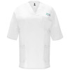 Unisex service top with short-sleeves. Crossed peak neckline. Pocket on chest and two side pockets. Side slits on hem.