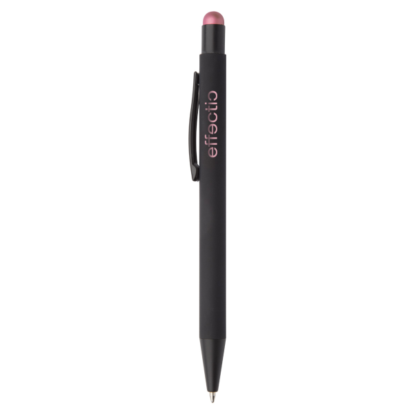 Aluminium ballpoint and touch screen pen with rubberized finish. With special coating for mirror engraving matching the stylus colour. With blue refill.