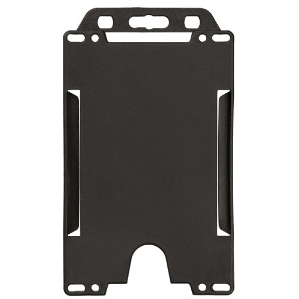 Portrait card holder made from recycled plastic. Ideal for exhibitions, workplaces, and networking events. Suitable for standard business card and credit card sized passes. Due to the nature of recycled plastic, colour shades may vary slightly, and there may be specks of colour. Made in the UK.
