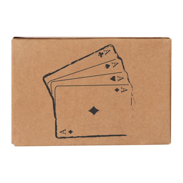 For sustainable gaming fun. Classic card game with a French leaf (Skat) made from recycled paper in a recycled cardboard box. Your advertising will be placed on the box.
