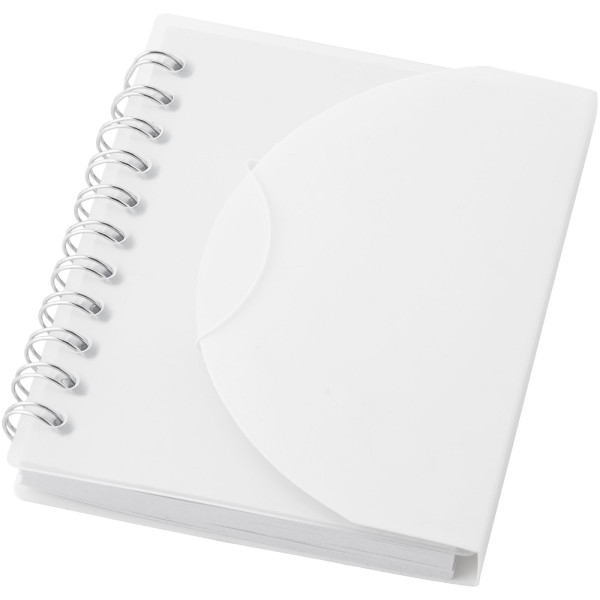 Extra small notebook with fold-over cover and 60 unruled A7 pages.
