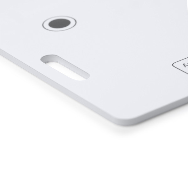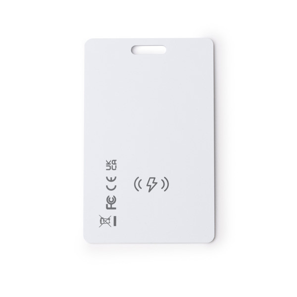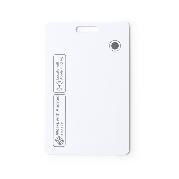 Smart tracker in card format made of ABS. Compatible with iOS and Android through the Find My App. Includes an audible alert. Water resistant. Wireless charging battery. Presentation in design box.