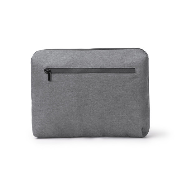 Dual case for two devices up to 12". Made of RPET 300D with water-repellent PVC coating. Airtight zips. Variety of internal compartments. Elastic fastening straps. Large outer pocket.