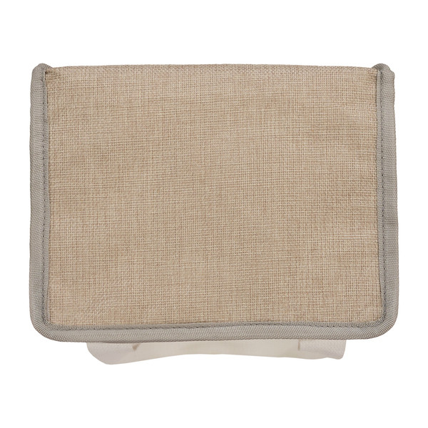 Thermal lunch bag made of jute and cotton. Perfect for taking lunch to the office, as well as for travel, beach or picnic. It comes with handles, outer cotton pocket closed with a zipper.