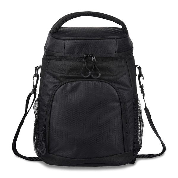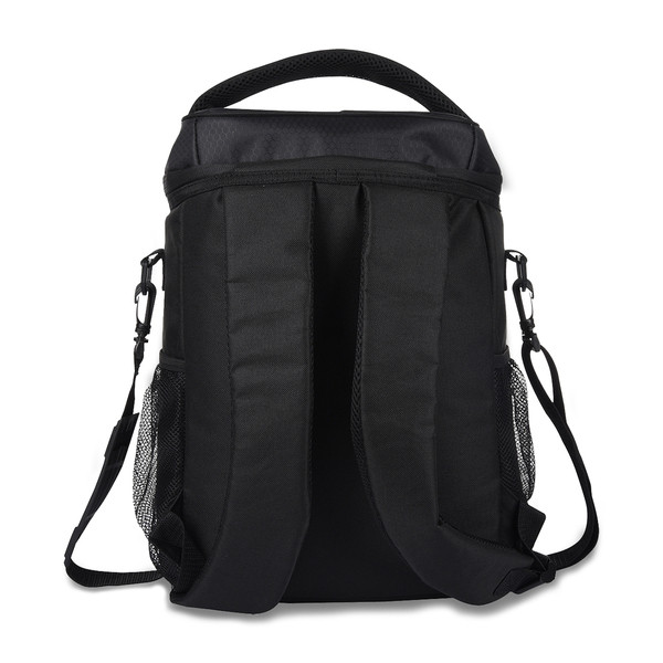 Isothermal backpack equipped with soft shoulder straps, adjustable shoulder strap and 2 mesh side pockets. There is an additional zippered pocket on the front. Thanks to its insulating properties, it maintains the appropriate temperature of the transported food. Capacity 12 liters.