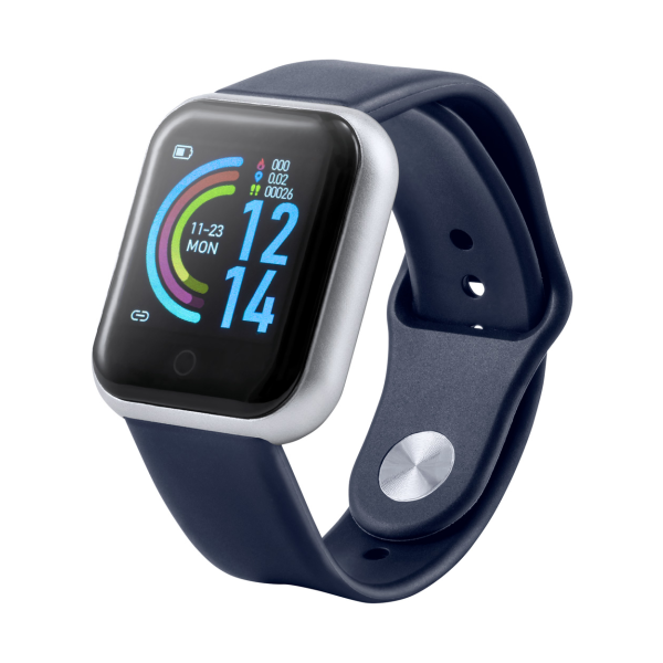 Multilingual, bluetooth smart watch with heart rate and blood pressure monitor, 1,3" TFT screen and TPU strap.