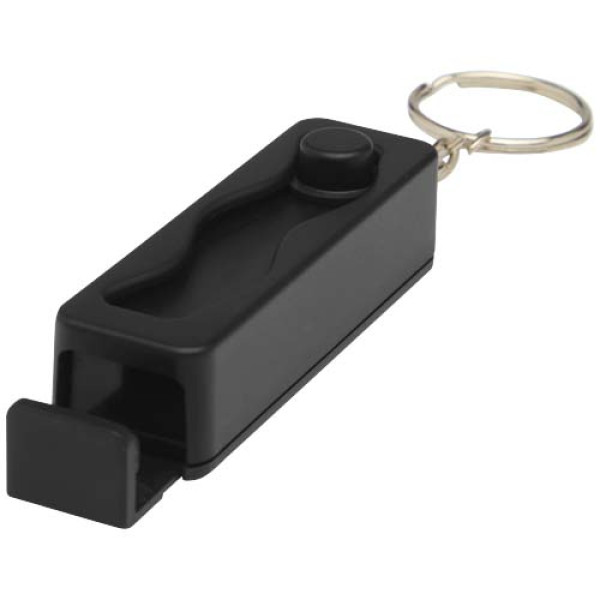 The Aggia is a fun and functional accessory made from recycled plastic. It combines a built-in phone stand with a fidget toy to help you stay relaxed and focused. Compact and easy to carry, it also comes with a keychain for everyday convenience.