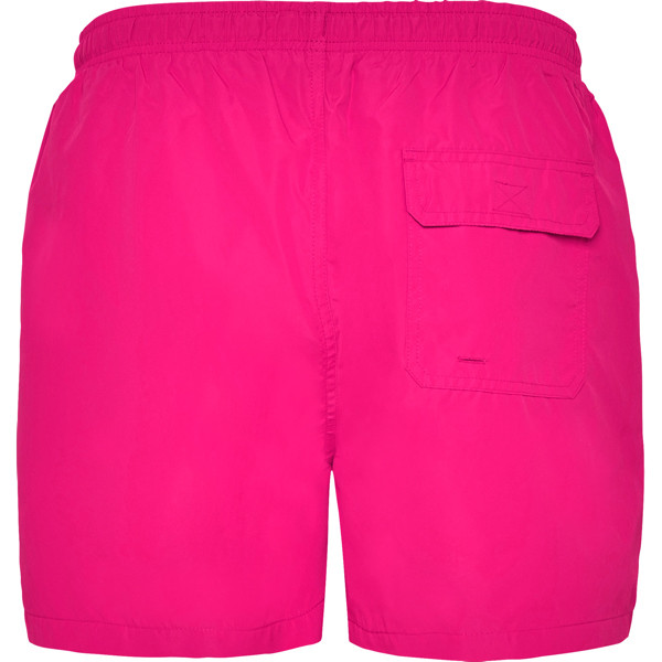 Swimming trunks with 2 side pockets. Adjustable matching drawcord and back pocket with gusset. Side vent eyelets. Double stitching and thread matching according to fabric. Pocket lining.