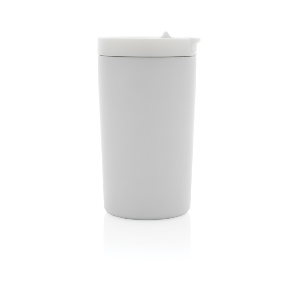 This double wall vacuum leakproof lock mug is the perfect size for your beverage. It's leakproof sealed flip lid is designed for easy open/close and on-the-go use. Vacuum insulation keeps beverages hot for up to 5 hours and cold for up to 15 hours. Made with RCS (Recycled Claim Standard) certified recycled materials. RCS certification ensures a completely certified supply chain of the recycled materials. Total recycled content: 80% based on total item weight. Capacity 300ml. BPA free and hand wash only.