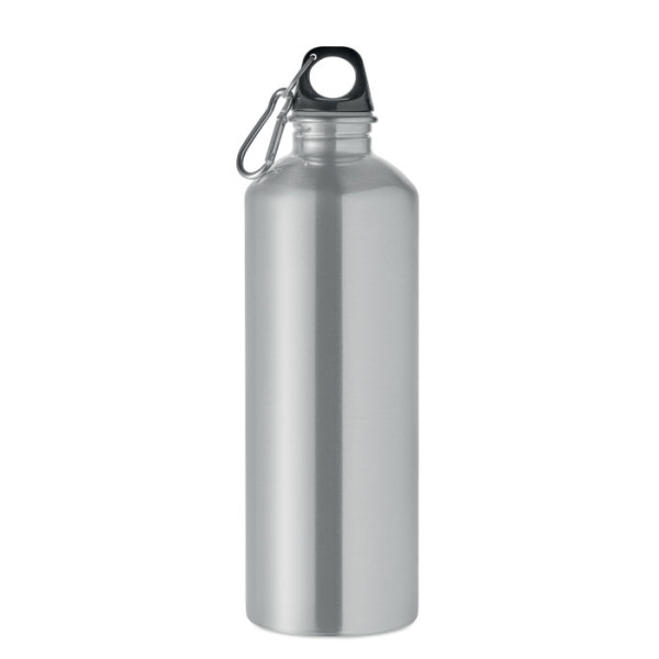 Single wall bottle (90% recycled stainless steel and 10% stainless steel) with a PP lid and carabiner. Capacity 1000 ml. As this is a single wall bottle, heat transfer can still occur.