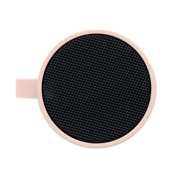 Wireless 5.1 speaker with metal body and rubber finish. Features 3W mono sound. Includes rechargeable and replaceable 500mAh battery. Compact and modern design.