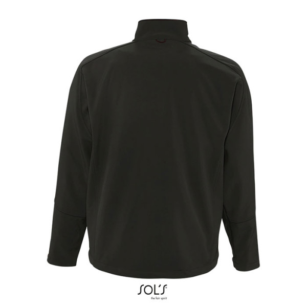 SOL'S RELAX Men's softshell jacket in technical fabric with one of the highest levels of waterproofing and breathability on the market. Pre-curved sleeves and modern cut for maximum comfort. 2 zipped side pockets, 1 zipped chest pocket, zippered pocket, adjustable drawstring at the waist, adjustable cuffs with Velcro, Microfleece lining, pocket for mobile phone. 340g/m². Only sold with print