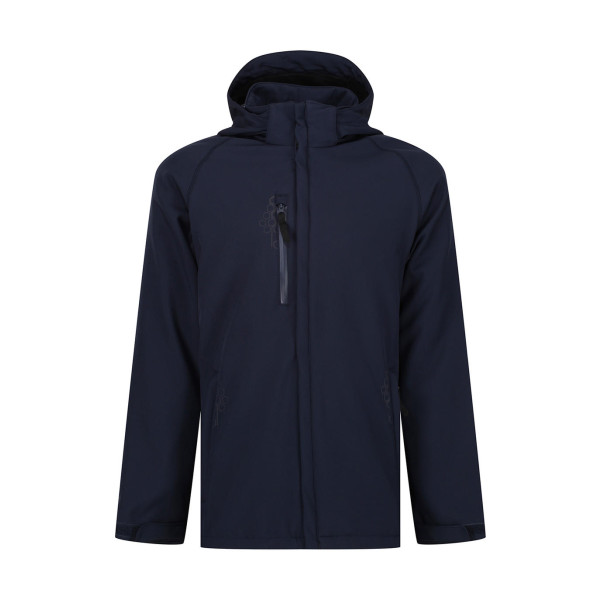 ·Vanjski sloj: 94% poliester, 6% elastan; djelomično reciklirani ·Mrežasto podstavljena ·Trajni vodoodbojni završni sloj ·Odvojiva kapuljača s mogućnošću podešavanja ·Patentni zatvarač cijelom dužinom jakne sa zaklopkom protiv vjetra ·Dublji bočni džepovi s patentnim zatvaračima, vodootporni džep na prsima s patentnim zatvaračem ·Manžete na rukavima prilagodljive širine ·Podesivi donji rub s vezicom za regulaciju širine ·Pristup za brendiranje strojnim vezom u podstavi jakne putem skrivenog patentnog zatvarača