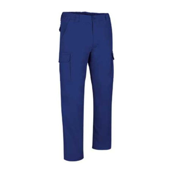 Trousers 65% polyester, 35% cotton. 240 grs/m2 twill fabric. 1 cargo pocket on left leg. 1 cargo pocket + cutter knife pocket on right leg. 2 back flap pockets. 2 waist pockets. Elastic waist. Reinforced seams. 20 units per box: 1 size, 1 color. Indi