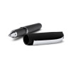 Roller pen made from resistant ABS with rubber touch in matte finish. Features a cap with clip and metallic details. Jumbo blue gel ink refill.