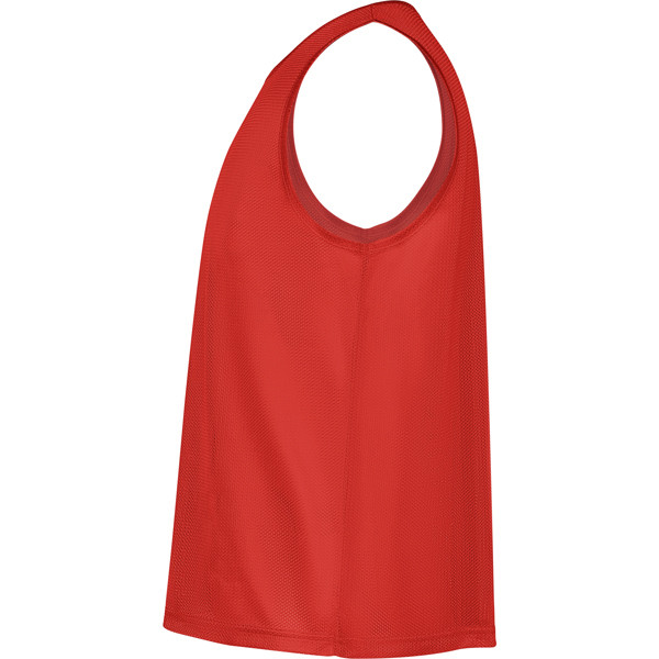 Unisex breathable sports pinnie.· Sewing trim in the same fabric in sleeve holes and neck. · Double stitching on the hem.