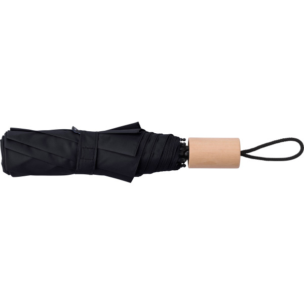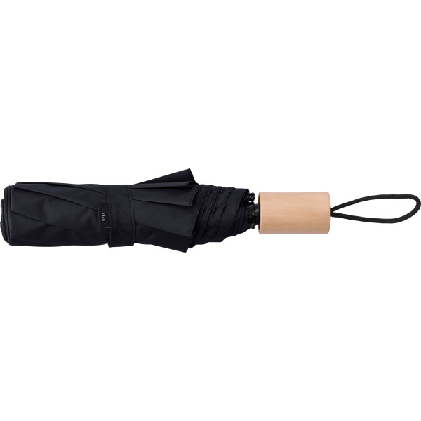 rPET 190T, foldable umbrella with eight panels and oak wood handle. Including pouch.