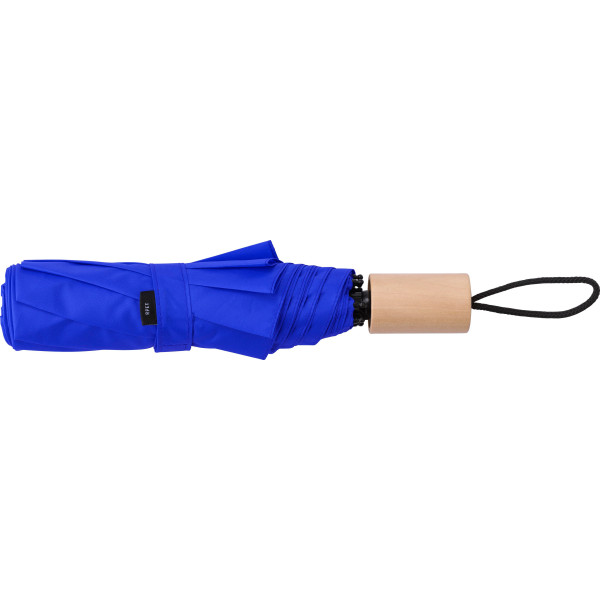 rPET 190T, foldable umbrella with eight panels and oak wood handle. Including pouch.