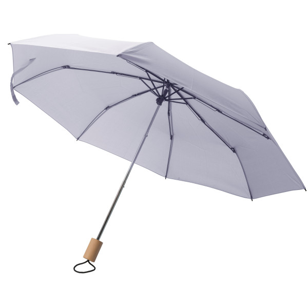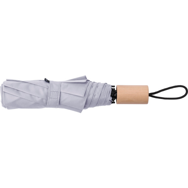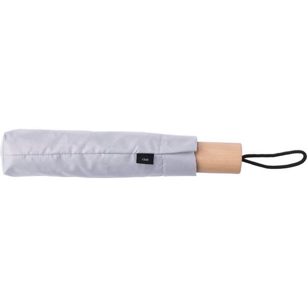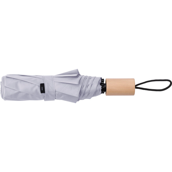 rPET 190T, foldable umbrella with eight panels and oak wood handle. Including pouch.