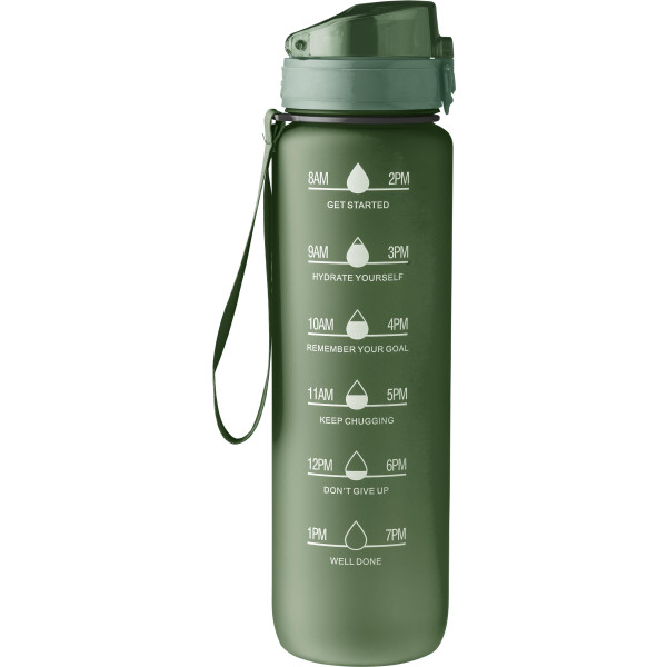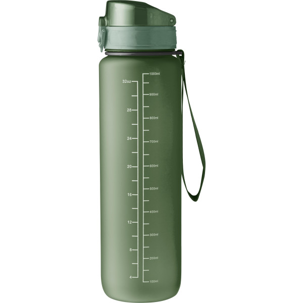 RPET drinking bottle (1000 ml) with matt finish and wristband. Leak proof.