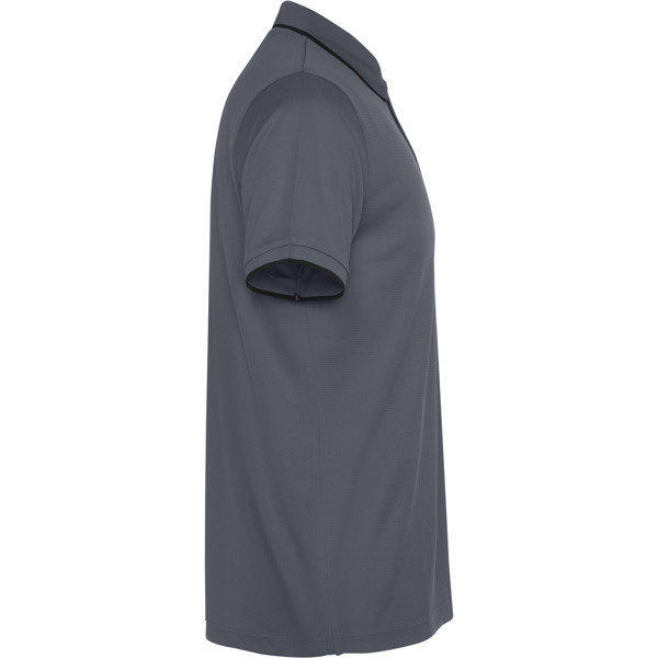 Technical unisex short-sleeved polo shirt. · 1x1 rib on collar and sleeves with contrasting colour detail. · 3-button placket.· Taped neckline in matching fabric.