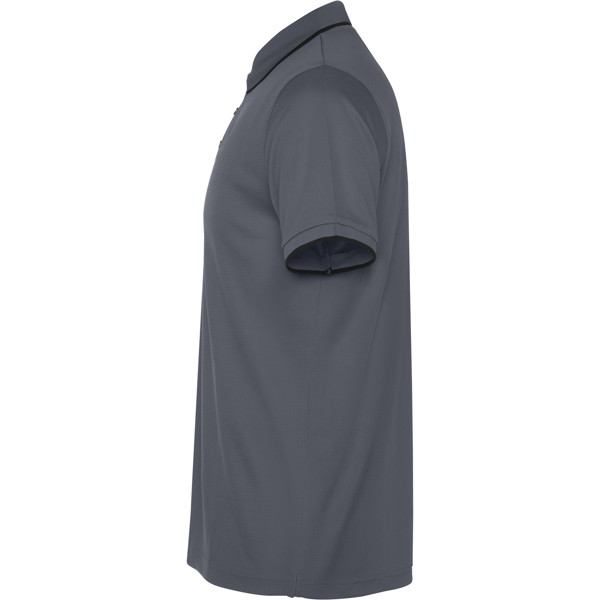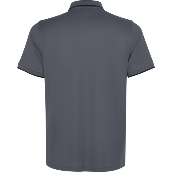 Technical unisex short-sleeved polo shirt. · 1x1 rib on collar and sleeves with contrasting colour detail. · 3-button placket.· Taped neckline in matching fabric.