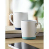 Ceramic mug with white matt finish and silicone base for stability. Capacity 300ml. Individual packing in white carton box.