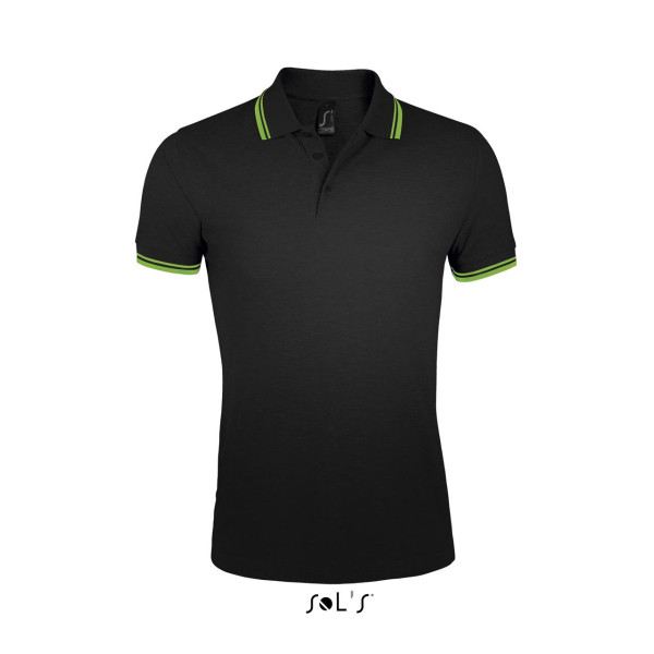 QUALITY - 200 PIQUÉ;100% Ringspun cotton;Rib 1x1 collar and cuffs;Reinforcing tape on neckline;STYLE - CLASSIC & ELEGANT;Short sleeves;Contrasting stripes on collar and cuffs;Tone on tone 3 button placket;Fitted cut;Cut and sewn;Side slits;Spare button on the inside seam;Refined dyed yarn stripe;