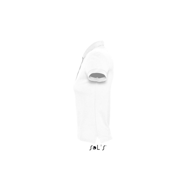 QUALITY - 170 PIQUÉ;100% combed Ringspun cotton;Rib collar and cuffs;Reinforcing tape on neck;STYLE - FEMININE;Short sleeves;Fitted cut;Tone on tone 4 button placket;Straight hem with side slits;Cut and sewn;Spare button on the inside seam;