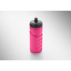 Sports drinking bottle with convenient handgrip in solid PE plastic. Capacity: 500 ml. Leak free.